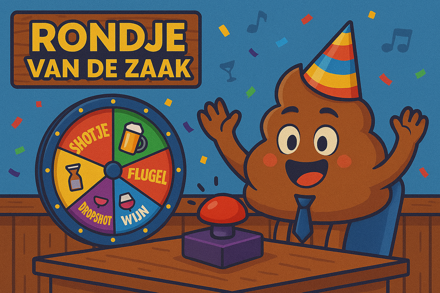 Druk op de knop en het rad begint te draaien… Wie trakteert? Of wat wordt het vandaag: bier, bitterbal of cocktail?